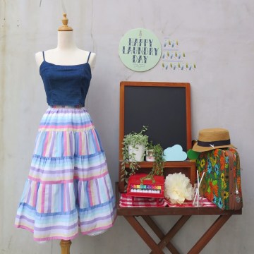 Silver Rainbow Lining| Vintage 1960s 1970s rainbow stripes Silver threads Flared Tiered Skirt
