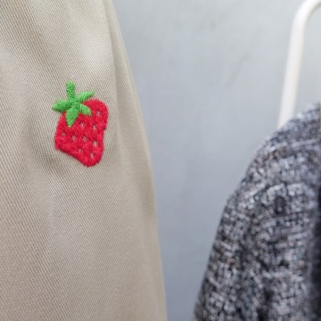 Strawberry Pickin’s | Vintage 1950s 1960s Retro novelty embroidered Strawberry print Khaki Midi Skirt