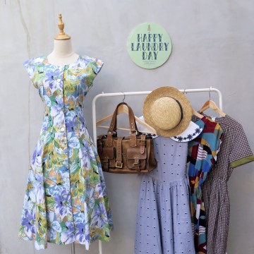 Inez | Vintage 1980s-does-1950s Button down Midi dress with Impressionist Floral Brush Strokes Abstract painting print