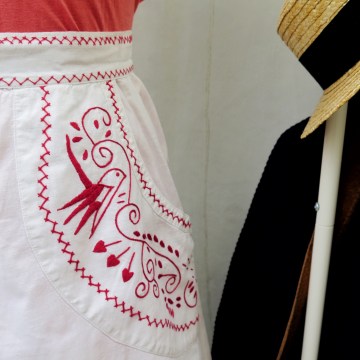 Love birds | Vintage 1960s 1970s mexican embroidered bird print white skirt