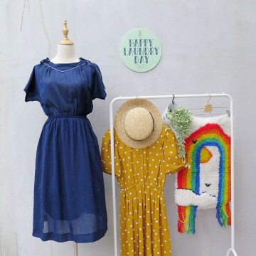 Betsy Blue | Vintage 1980s-does-1950s navy blue Flared skirt tea dress