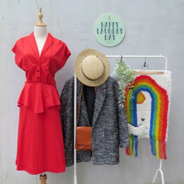 Bloody Mary Cranberry | Vintage 1980s-does-1940s Polka dot Peplum Red Midi Dress