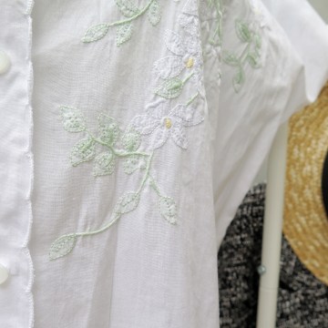 Snowbells | Vintage 1950s 1960s Hand-embroidered Blouse with scalloped edges