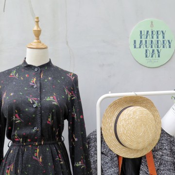 L’elegante | Vintage 1970s-does-1940s Full sleeve pleated skirt Navy blue Dress